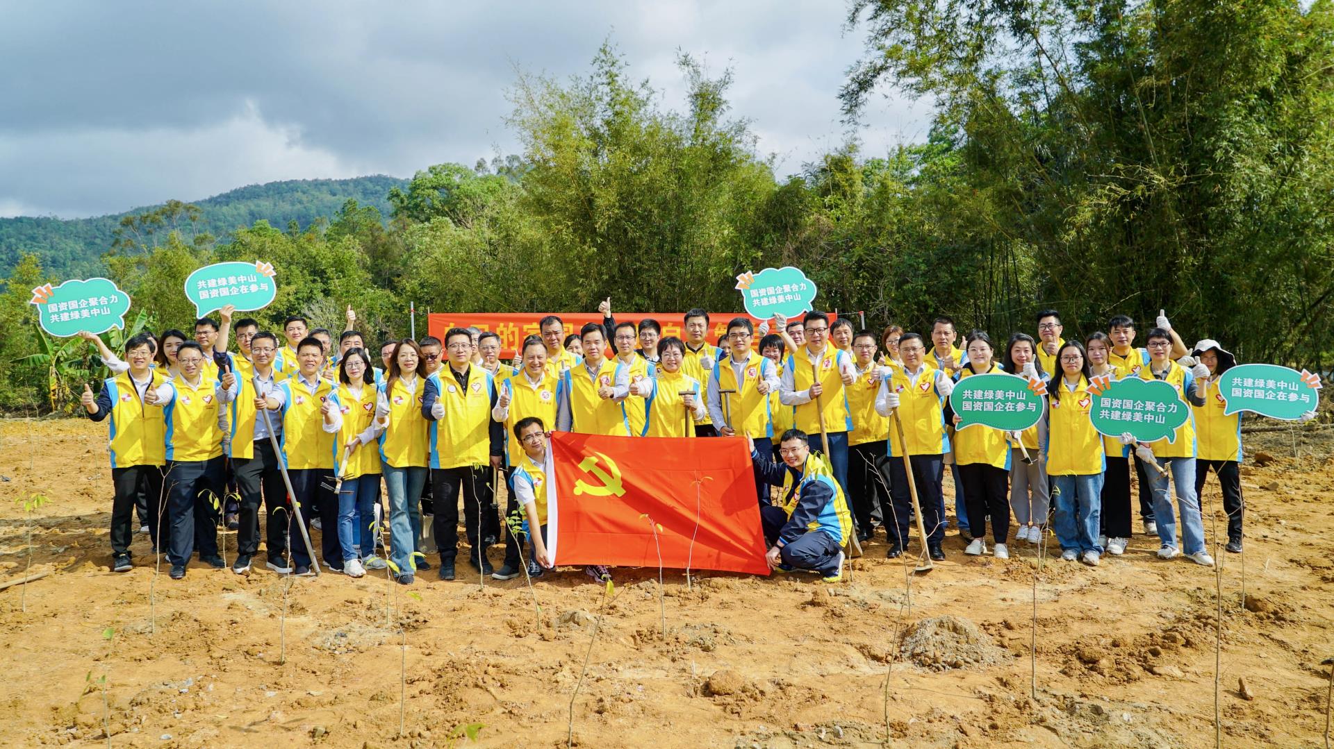 ▲ 2月20日,中山投控黨員志愿者前往三鄉(xiāng)鎮(zhèn)塘敢村十二勇士主題公園開展“綠美中山黨旗揚”新春植樹活動。