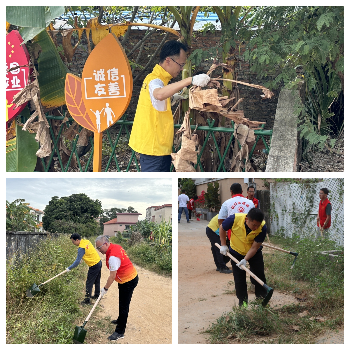 在五桂山南橋村,文旅投黨總支帶領(lǐng)下屬中山影視城黨支部黨員志愿者與村委共同謀劃“四小園”建設(shè),重點(diǎn)清理了綠化帶內(nèi)的煙頭、塑料袋等垃圾,清掃了枯枝落葉,營(yíng)造優(yōu)美、整潔、宜居的生活環(huán)境。