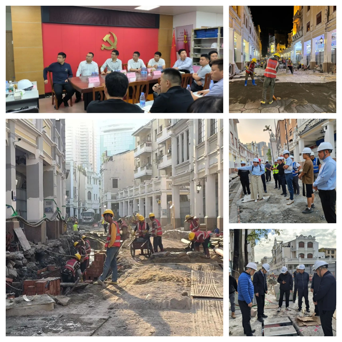 由于現(xiàn)場(chǎng)施工條件的復(fù)雜性,按原方案進(jìn)行施工將導(dǎo)致開街時(shí)間大大延期。為盡可能減少對(duì)市民游客以及商戶的影響,保證街區(qū)人氣和營(yíng)商環(huán)境的連續(xù)性,石岐街道主要領(lǐng)導(dǎo)多次組織施工單位和設(shè)計(jì)單位開展研討會(huì)議,不斷優(yōu)化施工方案,將原先400天的工期縮短至200天。在保障施工安全的前提下進(jìn)行“三班倒”施工,日夜兼程、加班加點(diǎn)、保質(zhì)保量地?fù)尰厥┕みM(jìn)度。